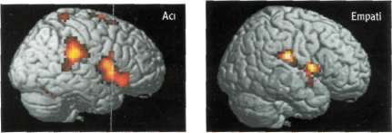 Sinirbilim (nöroloji) araştırmacıları beyin görüntüleme teknikleri kullanarak insanın beyninin, sevdiği yakınlarının acılarını da kısman hissettiğini belirlediler. İnsanın başkalarının hissettiklerini hissedebilme yeteneği (empati), insanların sosyal çevrelerine uyum sağlamalarında büyük önem taşıyan kişisel ilişkiler geliştirmelerinde yardımcı oluyor. Londra'daki University College araştırmacılarından Tania Singer yönetimindeki ekip, aralannda romantik ilişkiler bulunan 16 çiftle deneyler yürütmüş. Deneylerde odaya adılan çiftlerden kadın bir manyetik rezonans görüntüleme makinesi içine alınıyor ve ya kendi eline ya da partnerinin eline bir saniye süreyle bir elektrik şoku uygulanırken beyninin görüntüleri izleniyor. Kadın, erkeği göremiyor; ancak, bir ekrandan şokun kendisine mi, yoksa partnerine mi uygulanacağını ve derecesini görebiliyor.